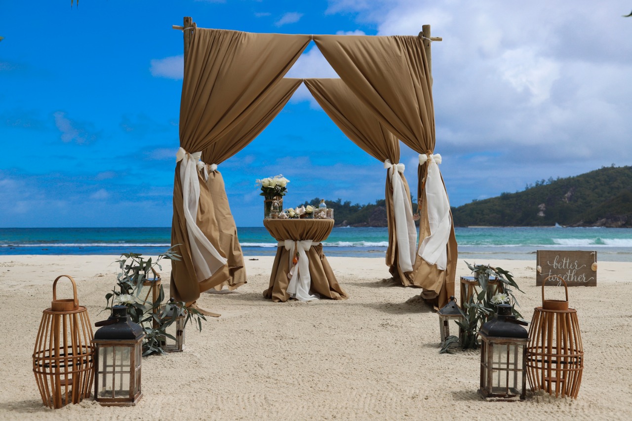 Legal wedding ceremony conducted on the beach or venue by an officer from the Seychelles Civil Status